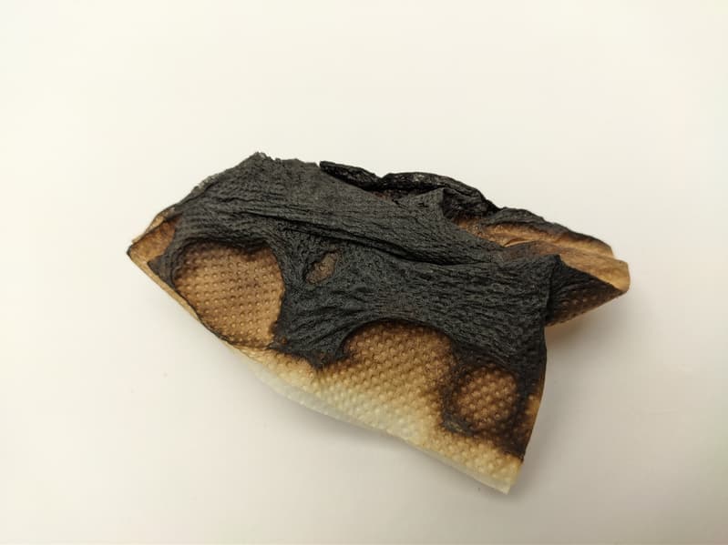 Визуально наши салфетки никак не изменились. Мы не обнаружили ни желтых пятен, ни каких-либо других признаков того, что что-то собирается гореть.
