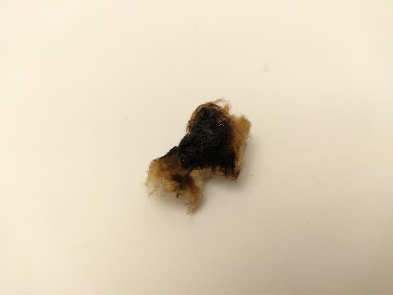 Обугливаться вата начала уже через минуту. Запах гари появился почти сразу.