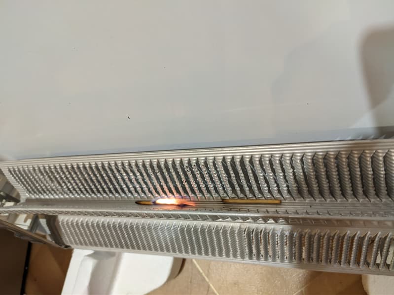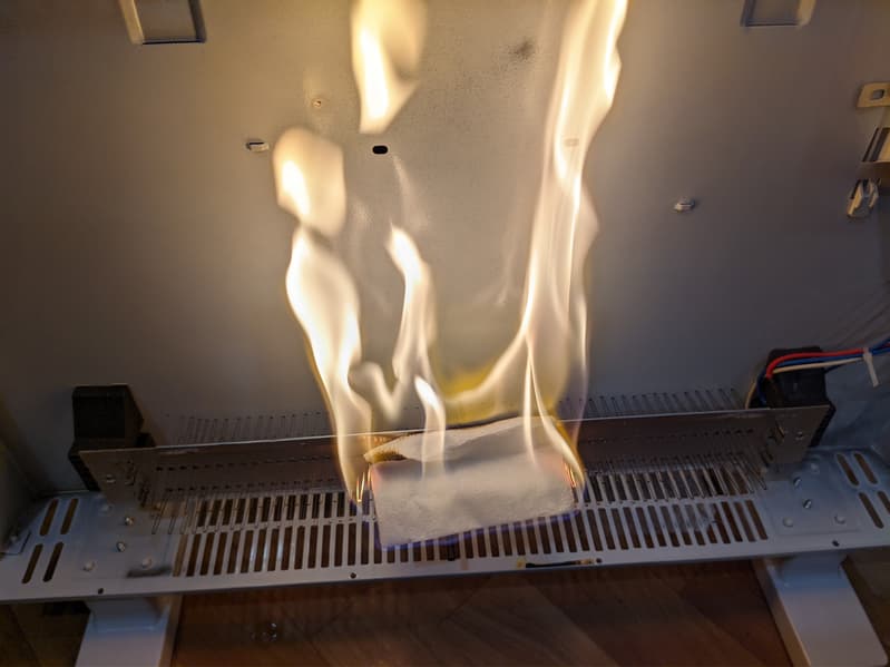 Опасность пожара мы снова оцениваем как высокую: горящая спичка легко может провалиться сквозь решетку на дне конвектора.
