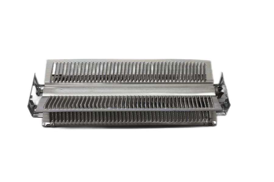 Более современными и безопасными считаются монолитные нагревательные элементы, в частности системы hedgehog, которые активно продвигают многие производители. Общий принцип тут следующий: нихромовая нить с диэлектрическим заполнителем располагается в цельнолитом алюминиевом корпусе с развитым оребрением. В результате мы, теоретически, должны получить повышенную надежность и не столь высокую температуру на поверхности самого нагревательного элемента.