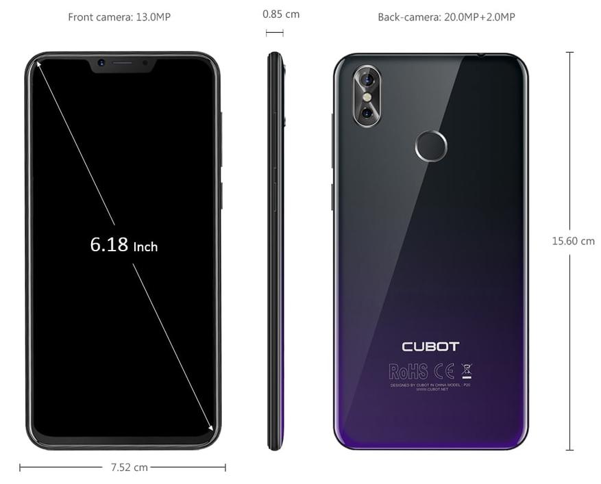 Знаменитый бюджетник Cubot P20 с 2К-экраном 6,18”, «монобровью», камерой 20 Мп и 4/64ГБ памяти за $125 с годовой гарантией