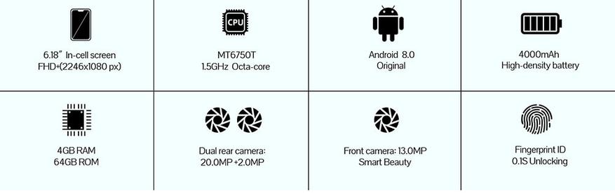 Чем же он так понравился всем? Естественно модным экраном с «моно бровью» как в Iphone. 2К экран никого не оставит равнодушным. Правда размер 6.18'' может показаться большим, но зато за счет узких рамок и соотношения 19:9, получается плюс минус 5.5''. Чудеса. Камера 20MP, но при плохом свете немного фонит, в принципе, как и большинство китайских телефонов. Памяти 4\64ГБ, батарея целых 4000 mAh, как в линейке Redmi от Xiaomi — 1.5 дня активного использования можно смело ожидать.
