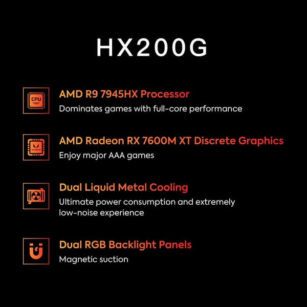 В оснащение Minisforum HX200G вошёл 16-ядерный AMD Ryzen 9 7945HX, а за обработку графики отвечает Radeon RX 7600M XT с 8 ГБ собственной памяти. Об объёмах ОЗУ и SSD данных нет, но можно не сомневаться, что они будут немалые. За отведение тепла отвечает система жидкостного охлаждения, а корпус хоть и небольшой, но снабжён RGB-подсветкой.