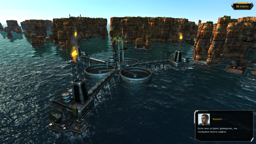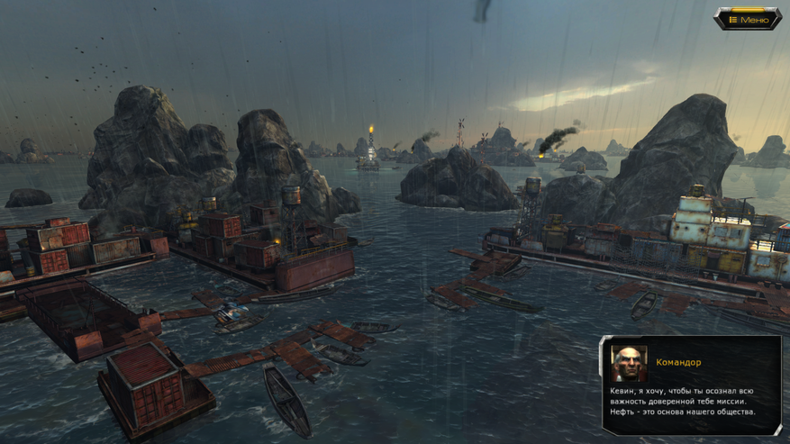 Сюжет в игре простой и понятный, как три меры чистой питьевой воды. Глобальное потепление все же произошло и наша прекрасная планета превратилась в большой океан с редкими архипелагами. Да, с научной точки зрения — это полная чушь. Планета не покроется океаном даже если полностью растопить все льды на ней. Хорошо конечно от этого никому не будет — какие-то страны уйдут под воду, измениться климат и погибнут многие морские обитатели, а доступ к питьевой воде окажется еще более затрудненным. А в Oil Rush нам продемонстрировали близкий к Водному миру пейзаж. Люди ютятся на платформах или в плавающих хижинах, а транспорт — это корабли и самолеты. И главный ресурс в этом новом дивном мире — нефть.