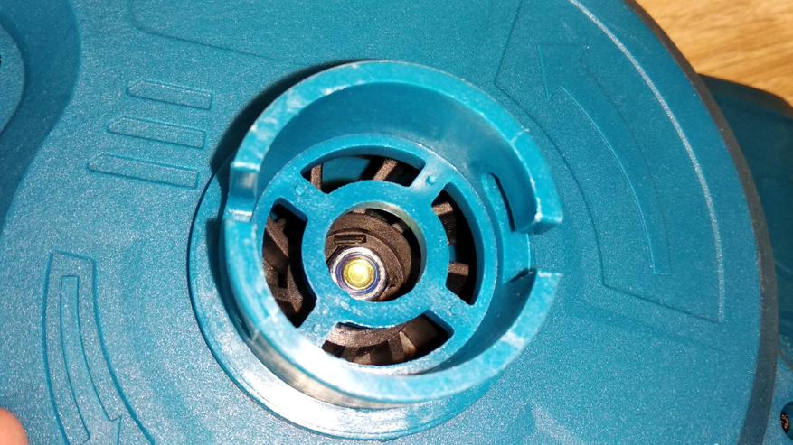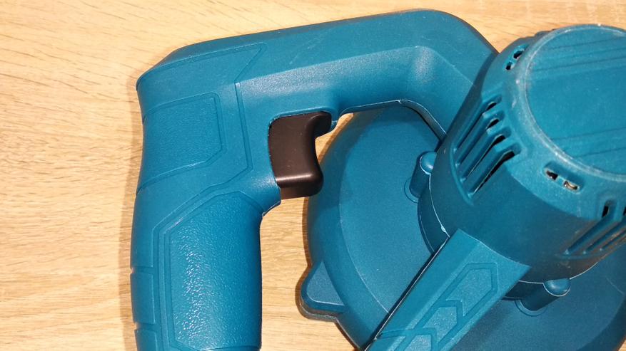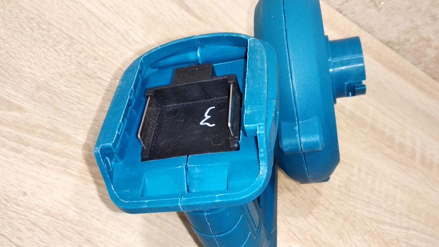 Воздуходувка такая же, как десятки других, с площадок из Поднебесной. Даже корпуса часто одинаковые и цвета. Рукоять с кнопкой, посадочное место для АКБ, блок двигателя и два отверстия, одно всасывающее с крыльчаткой, другое «выходное». Корпус пластиковый и скреплен зачем-то на Torx T10 винты. Два открутить не смог, нужно длинное жало, а биты все оказали обычные. Сборка и/или литьё корпуса далеко не супер, но если честно, меня такой момент редко волнует, это дешёвый инструмент для достаточно грязных работ. Поэтому, внешний вид тут не так важен, хотя и может косвенно показывать отношение к остальному.