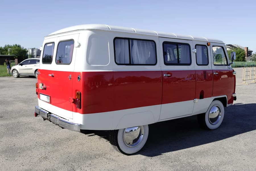 Автомобиль 2017 года выпуска окрашен в красный и белый – как классический Volkswagen Transporter T1 (отсюда и название «Буханваген»). Пробег невелик – всего 7,5 тыс. км (из них 4,2 тыс. км – на съемках), а состояние, по словам продавца, «лучше идеального».