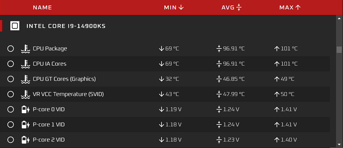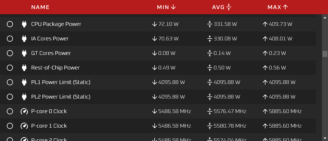 TDP значения Power Limit 1 — 150 Вт, но максимальное потребление достигает 410 Вт, хотя в среднем потребление пониже — 330 Вт. Максимальная температура со всеми ядрами P, работающими на частоте 5,9 ГГц, 101 градус Цельсия. Так что топовый CPU потребует и топового охлаждения.