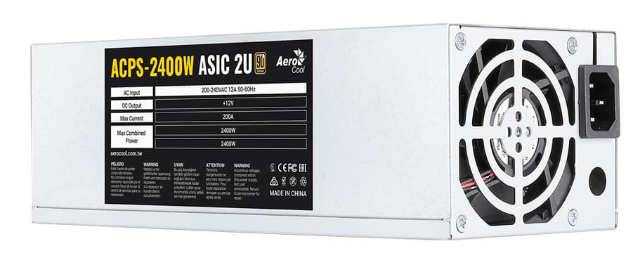 В моделях AeroCool ACPS 1600w ASIC 2U и ACPS 2400w ASIC 2U размерами 230 x 150 x 86 мм и 260 x 110 x 84,5 мм соответственно установлено по два вентилятора типоразмера 80 мм.