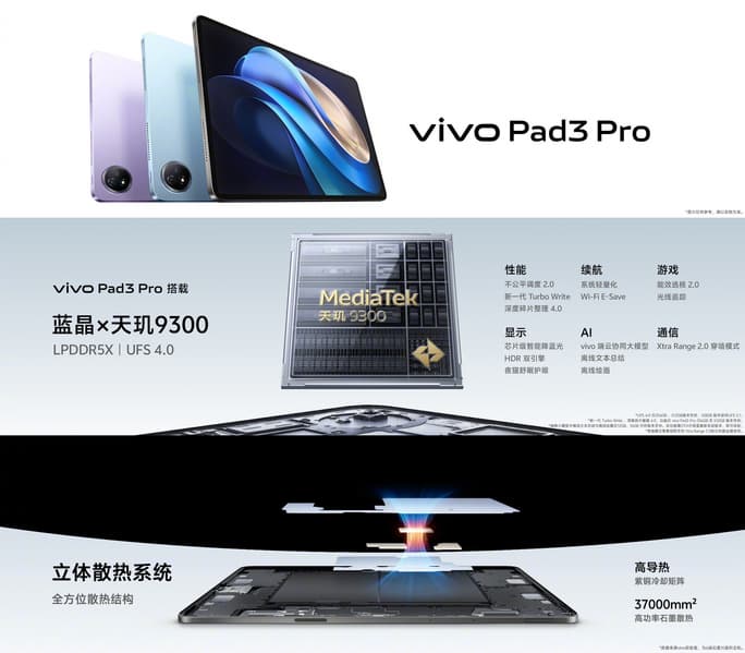 Суперпланшет Vivo Pad3 Pro оказался недорогим. Экран 3К 144 Гц, Dimensity 9300, 11 500 мА·ч, 66 Вт и 8 динамиков — за 415 долларов