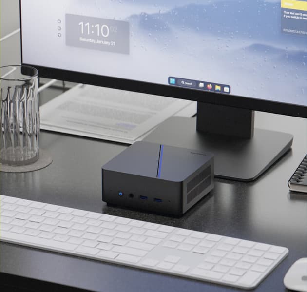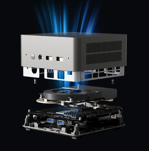 Компьютер оснащается исключительно 8-ядерным процессором Core i5-12450H с частотой до 4,4 ГГц. За его охлаждение отвечает система из невысокого радиатора и одного вентилятора. Слотов SO-DIMM для оперативной памяти DDR4-3200 предусмотрено два, максимум ОЗУ — 64 ГБ. Для SSD имеется один разъем M.2.
