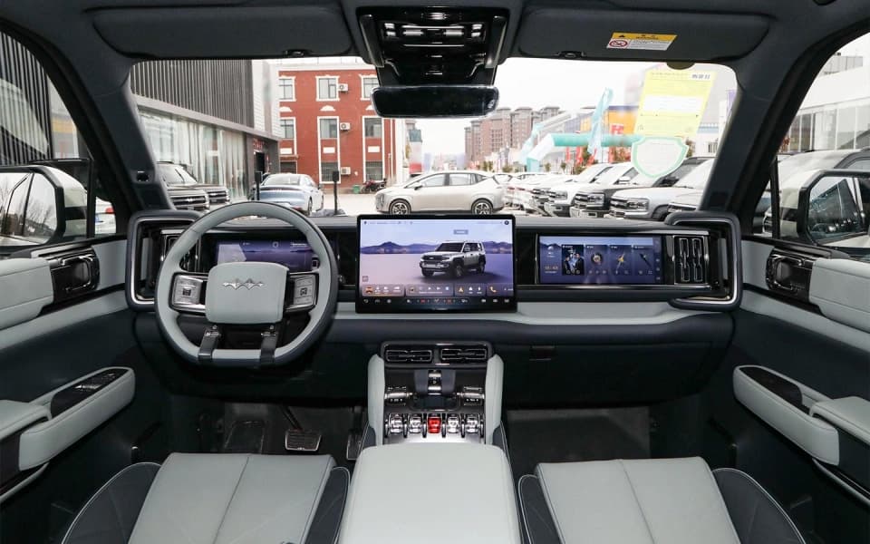 По своим габаритам BYD Leopard 5 сравним с Toyota Land Cruiser Prado. Внедорожник построен на платформе DMO: передняя подвеска — двухрычажная, задняя — многорычажная. Клиренс составляет 220 мм.