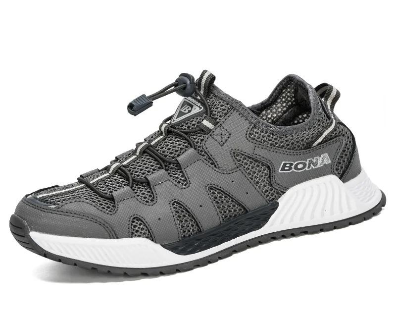 Сетчатый верх имеет зоны с разной плотностью плетения волокон, пришитый язычок, петли из канвасных лент и полоски сбоку, светящиеся в темноте (у некоторых вариантов). Пятка усилена канвасной петлей, а подошва из EVA имеет резиновый слой снизу, препятствующий скольжению.