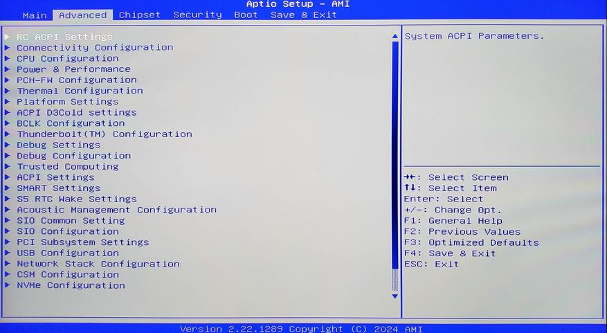 Bios стандартный Aptio Setup от American Megatrends, для входа нажимаем del перед загрузкой системы после включения. Все настройки доступны для изменения, никаких ограничений. Все страницы показывать не буду, т. к в некоторых разделах очень глубокая структура.