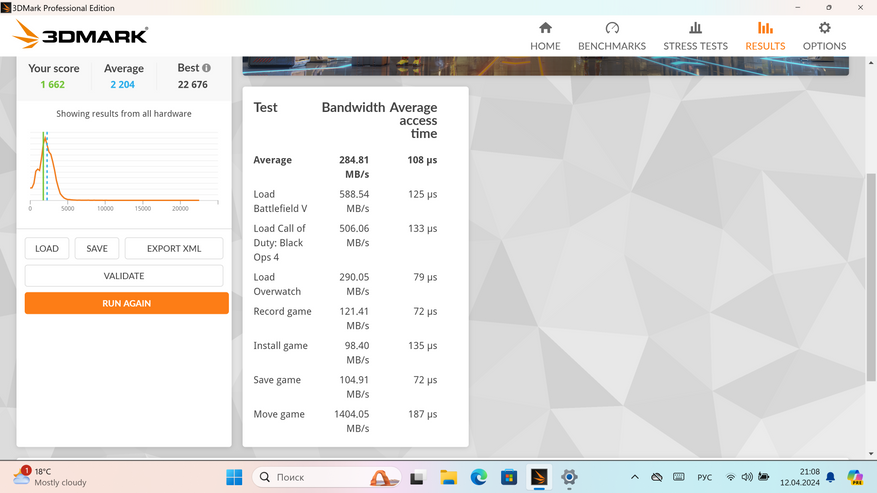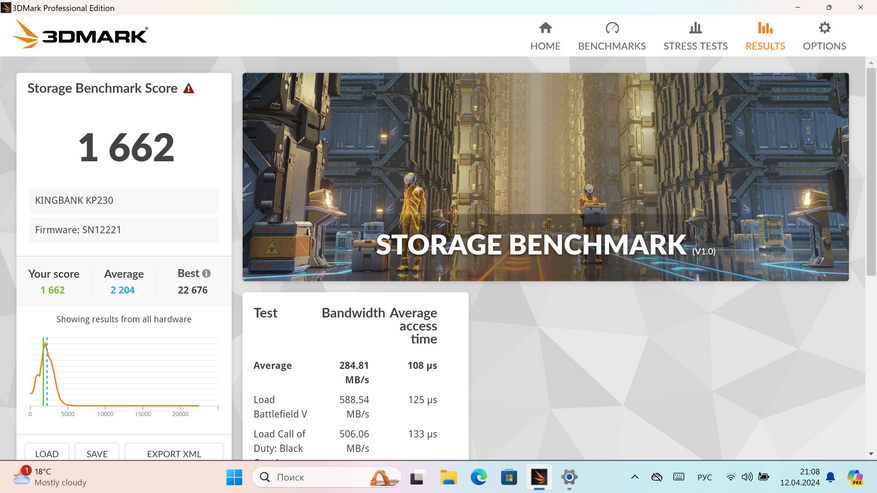 Результаты тестирования накопителя в Storage benchmark от 3D Mark можете изучить на следующих скриншотах.