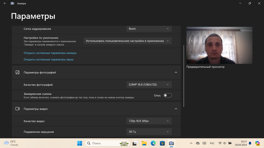 Как и в подавляющем большинстве ноутбуков начального и среднего сегмента, камера стоит самая дешманская. При слабом освещении картинка заметно теряет детализацию. Но в целом, для видео звонков и конференций использовать ее можно.