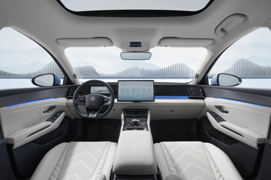 BYD Qin L DM-i оснащен интеллектуальной кабиной DiLink, 15,6-дюймовым адаптивным поворотным экраном, функцией цифрового ключа NFC. Интеллектуальная система помощи при вождении предлагает адаптивный круиз-контроль, помощь в экстренном удержании полосы движения и мониторинг слепых зон, а также другие функции.
