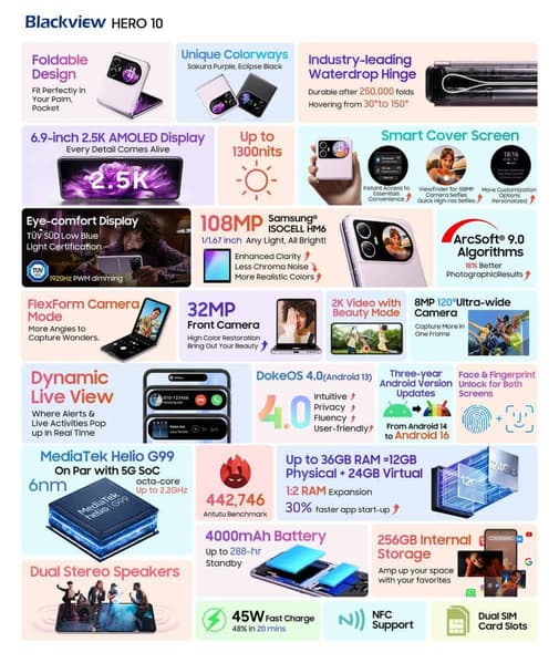Самый дешёвый складной смартфон — Blackview Hero 10 — наконец-то официально представлен. Утечки не соврали, это действительно самое доступное решение в подобном форм-факторе.