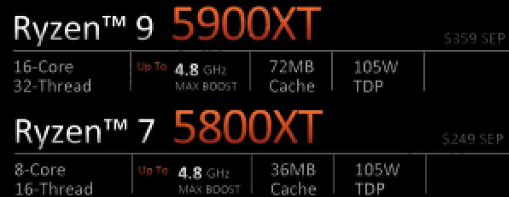 Стоимость процессоров уже известна: Ryzen 9 5900XT — 360 долларов, Ryzen 7 5800XT — 250 долларов. Новинки поступят в продажу в июле.