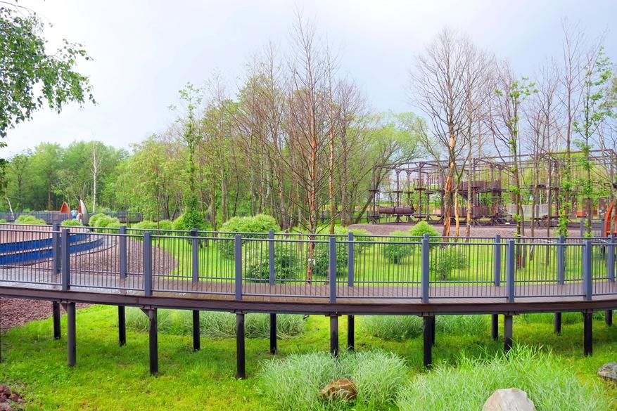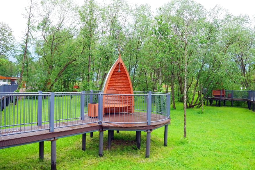 Еще пример бережного отношения к природе — это пешеходные дорожки, которые выполнены на высоте от земли. Можно гулять среди деревьев, по безопасным деревянным настилам и при это находится среди великолепия природы. Находится в тени деревьев.