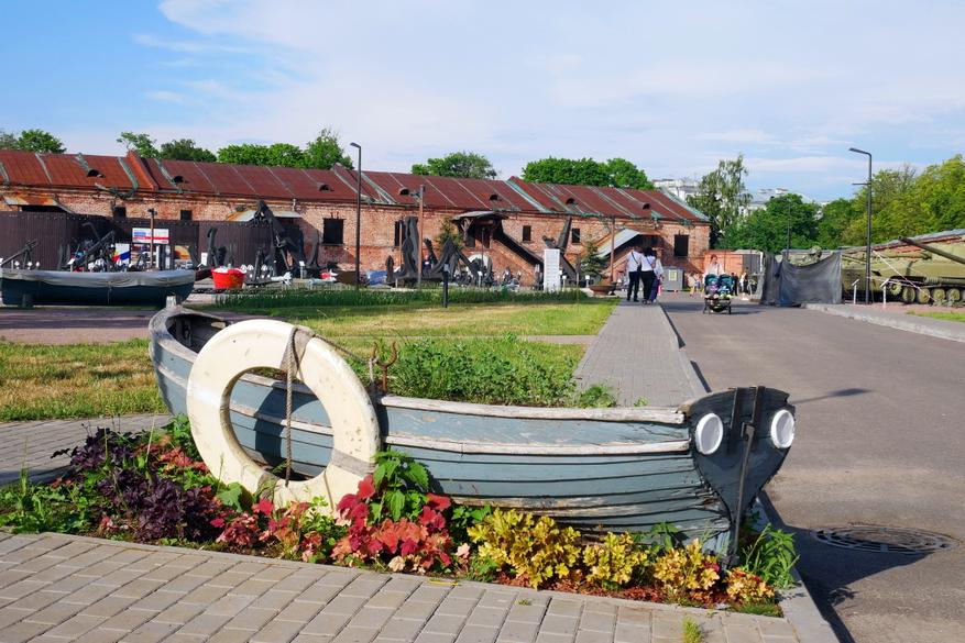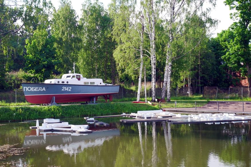 Также на территории можно увидеть стоянку на земле небольшого судна «Победа» и шлюпку, превращенную в красивую клумбу.