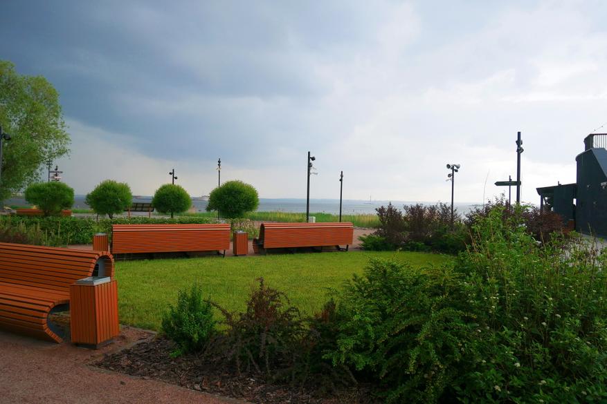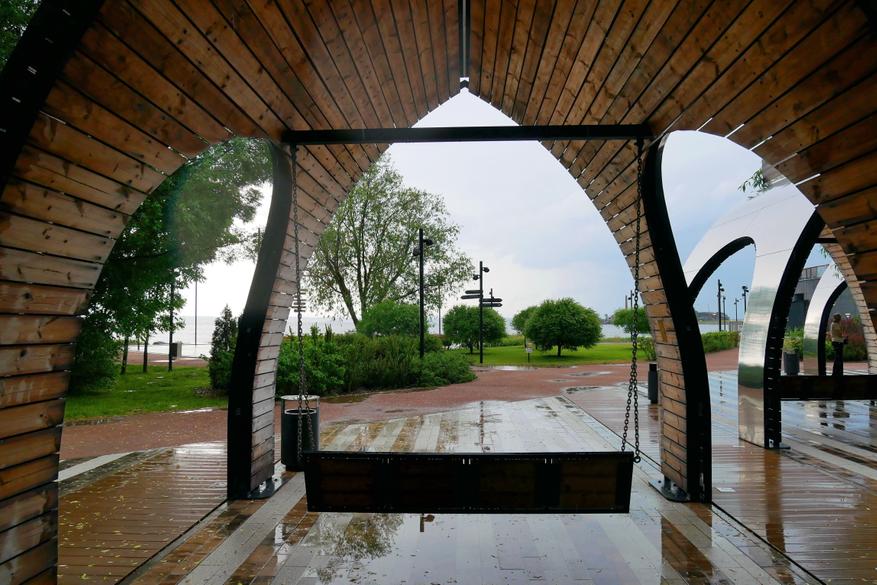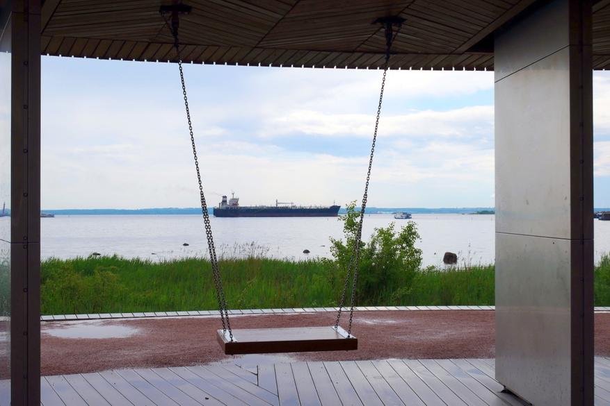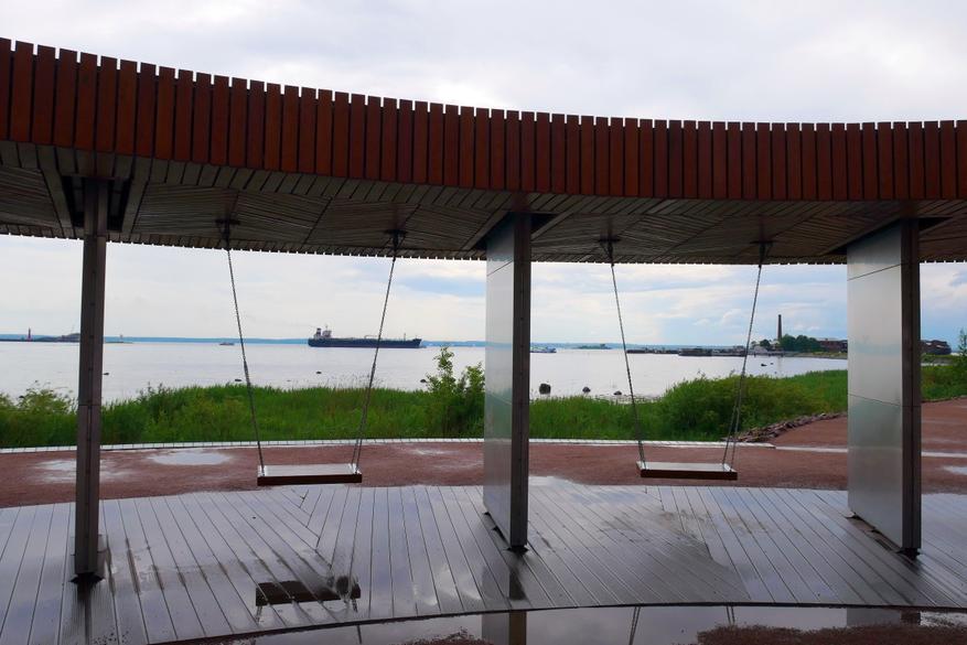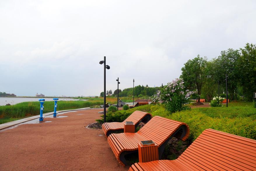Парк расположен на берегу Финского залива, прямо с его берегов можно наблюдать за фарватером и видеть все суда, которые проходят в северную столицу. И конечно же данный парк — это максимально фотогеничное место. Потому что в самых интересных и красивых местах поставили красивые деревянные скамейки и качели.