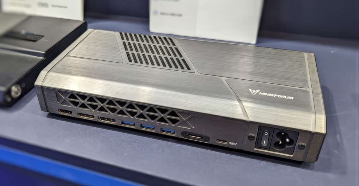 Адаптер имеет встроенный блок питания, а также набор портов, включающий HDMI 2.1, пару DisplayPort 1.4 и три USB 3.2 Gen 1. По размерам это далеко не самое компактное решение, но оно может быть дешевле других. Во-первых, тут нет слота для SSD, а во-вторых, Minisforum в основном делает упор на соотношение параметров и цены. Напомним, большинство подобных внешних видеокарт стоят около 600-700 долларов.