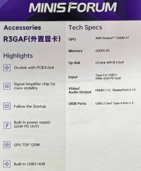 Компания Minisforum представила свою первую внешнюю видеокарту под названием R3GAF.