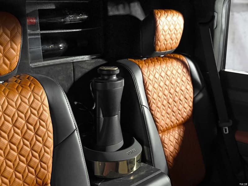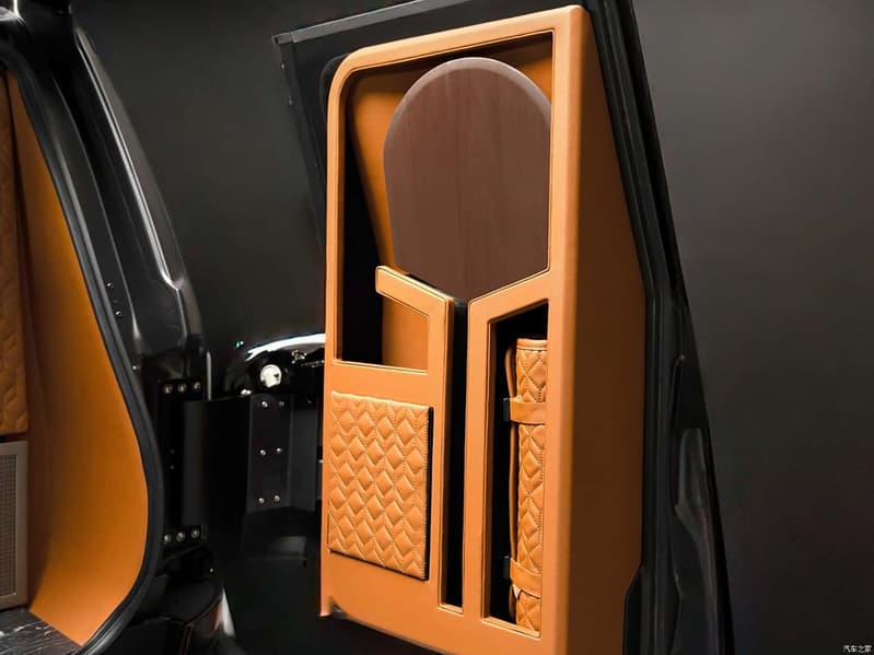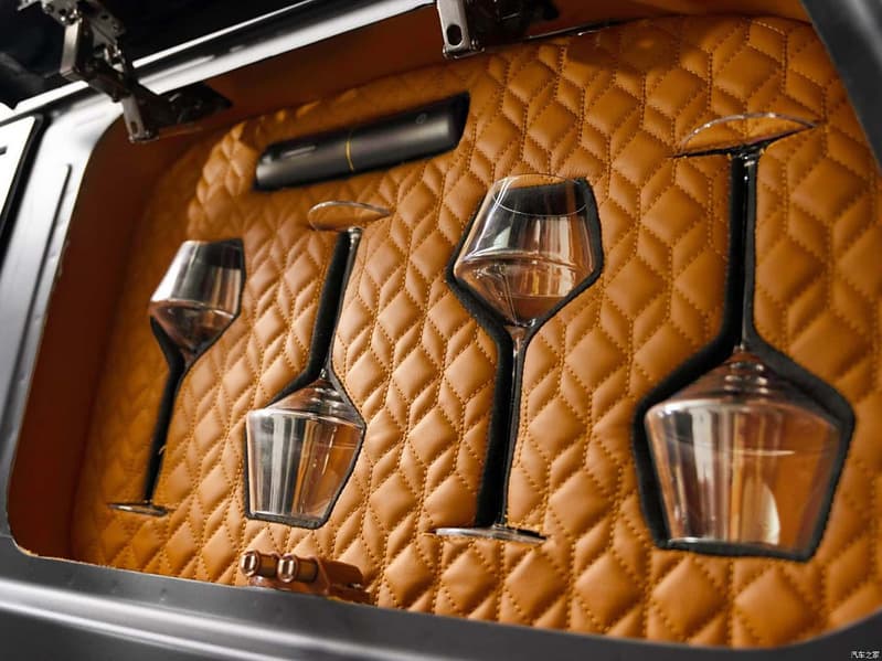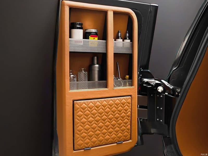В ходе переделки Lexus GX превратился из пятиместного в четырехместный. Интерьер отделан коричневой кожей, предусмотрены латунными и титановыми вставками, и даже есть элементы из натурального камня. Переделке подверглась дверь багажника, она теперь распашная и состоит из двух половин — так обеспечивается более удобный доступ к тому, что расположено внутри. И, вместе с тем, внутренние части дверей теперь превратились в полочки для различной кухонной утвари: приправ, посуды и т.д.