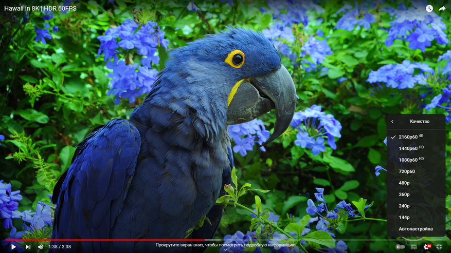 В Youtube доступно качество плоть до 8К\30 кадров в секунду и 4К\60 кадров в секунду.