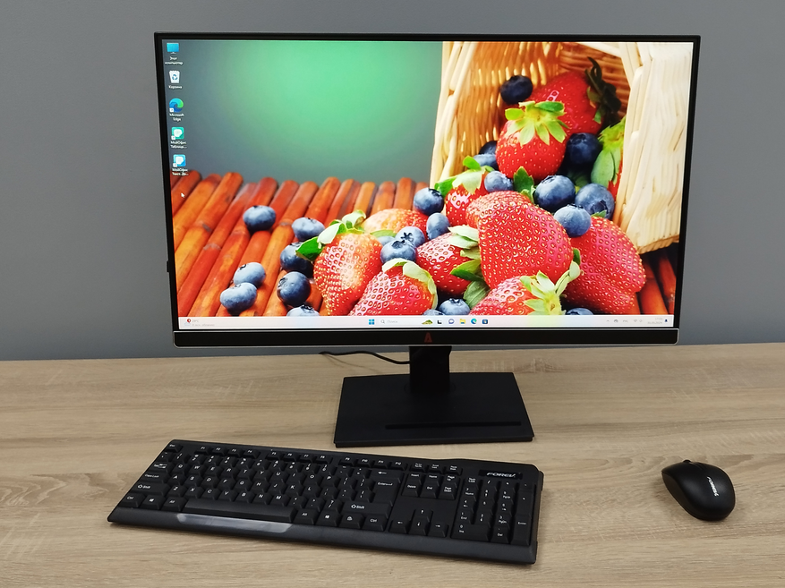С нетерпением нажимаю кнопку включения. Моноблок на секунду задумался, показывая логотип AMI BIOS, потом будто почувствовав мое желание, почти мгновенно загрузил Windows 11 Pro. На рабочем столе помимо иконок: «Мой компьютер», «Корзина» и Microsoft Edge были расположены пиктограммы предустановленного пакета «Мой Офис. Таблица» и «Мой Офис. Текст». Картинка на экране выглядит вполне яркой и сочной.