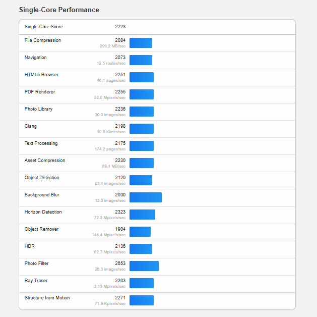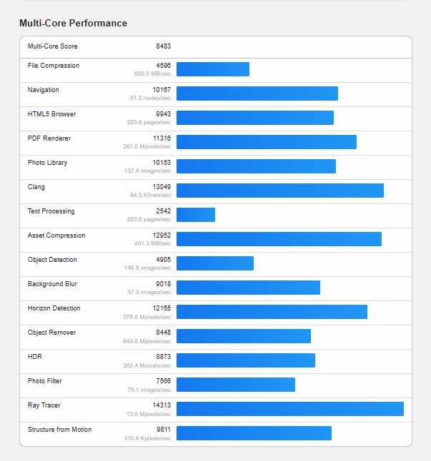 Для полноты обзора приведу также результаты тестирования в популярной программе GeekBench 6.3.0, которая отличается хорошей кроссплатформенностью и позволяет сравнивать даже, казалось бы, несравнимое. Например, производительность смартфонов с производительностью стационарных ПК.