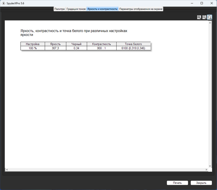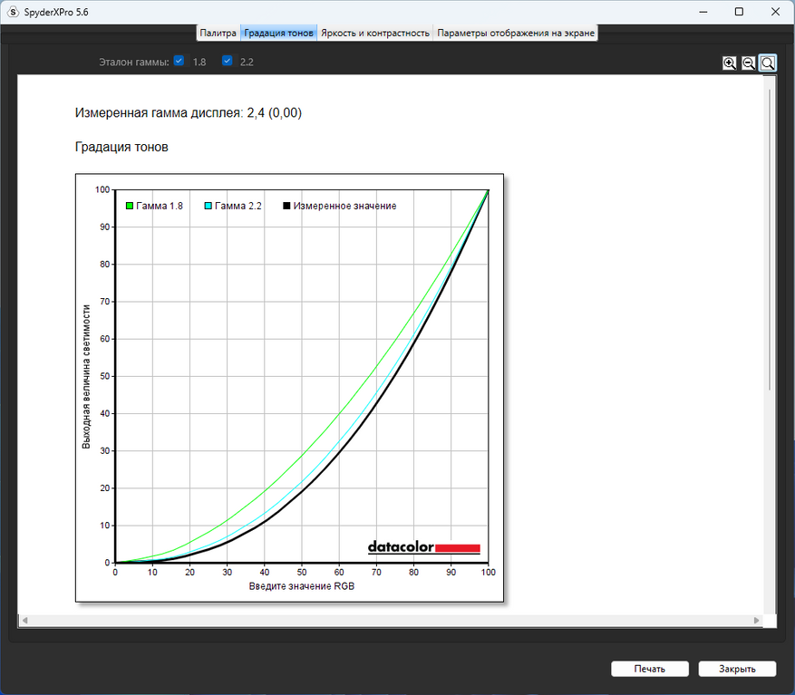 После этого я обратился к более профессиональному устройству — калибратору Datacolor SpyderX Pro. В результате была получена следующая информация: