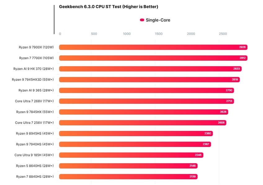 Core Ultra 7 256V, который будет далеко не самым быстрым в линейке, показал очень хорошие результаты в Geekbench. Он набрал 2608 и 10 506 баллов в однопоточном и многопоточном режимах соответственно.