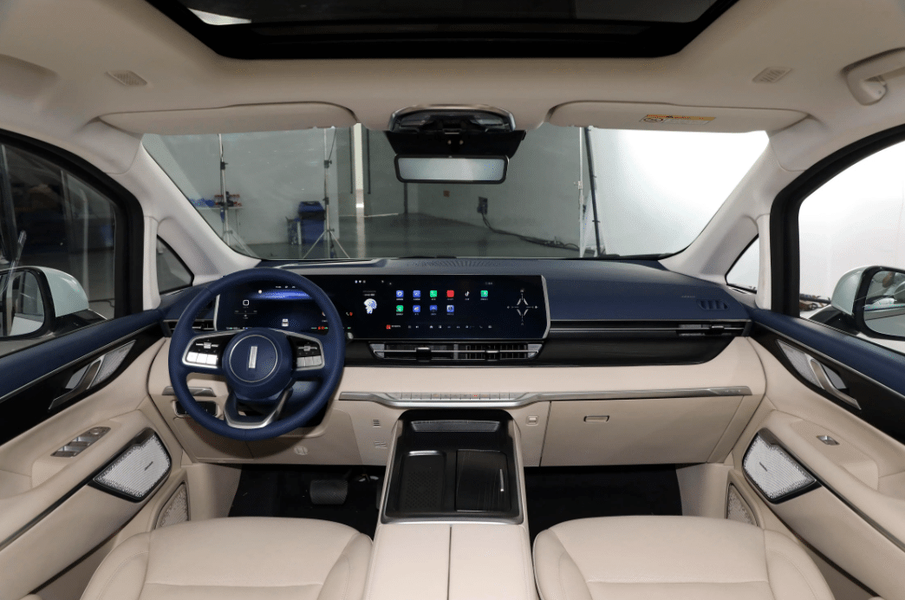 Салон оснащен двойным экраном, состоящим из 12,5-дюймового центрального экрана управления и 12,5-дюймовой приборной панели. Есть и 15-дюймовый W-HUD (проекционный дисплей), панели беспроводной зарядки для смартфонов на центральной консоли и 11 портов USB по всему салону.