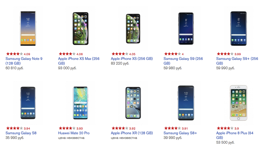 Samsung Galaxy Note9, iPhone XS Max, iPhone XS, Galaxy S9, S9+ и S8 остались лидерами рейтинга и занимают места с первого по шестое. Samsung Galaxy S8+ опустился с седьмого и на девятое место, его вытеснили Huawei Mate 20 Pro (7 место) и iPhone XR (8 место). Десятое место заняли сразу два смартфона — iPhone 8 Plus и Huawei P20 Pro, а модель Samsung Galaxy Note 8 вылетела из десятки лучших смартфонов по версии Роскачества.