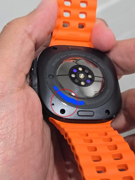 bimmerb0i получил свои Galaxy Watch Ultra в цвете Titanium Gray 19 июля, а уже через пару дней, снимая устройство с зарядки, он заметил отслоение краски на тыльной стороне над одним из винтов. Пользователь отметил, что не ходит с часами в спортзал и «нянчится» с устройством с тех пор, как получил его. Касается ли проблема Galaxy Watch Ultra в белом и серебристом исполнениях, непонятно, но данных об этом нет.