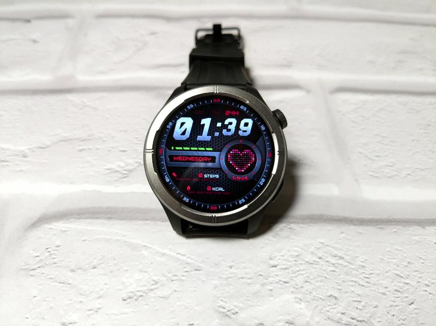 Установлен TFT экран 1.53″ с разрешением 360 x 360 точек. Дисплей здесь не совсем качественный, он тусклый и не самый сочный. Ручная регулировка яркости позволяет повлиять на ситуацию, но на средних значениях экрану всё же не хватает сочности, а на самом максимуме довольно быстро садится аккумулятор.