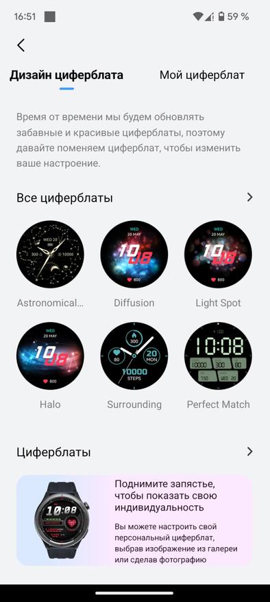 В приложении Haylou Fun найдём более 150 циферблатов на любой вкус и цвет. Радует функция быстрой смены циферблата — прокручиваем колесо и подбираем нужный вариант.