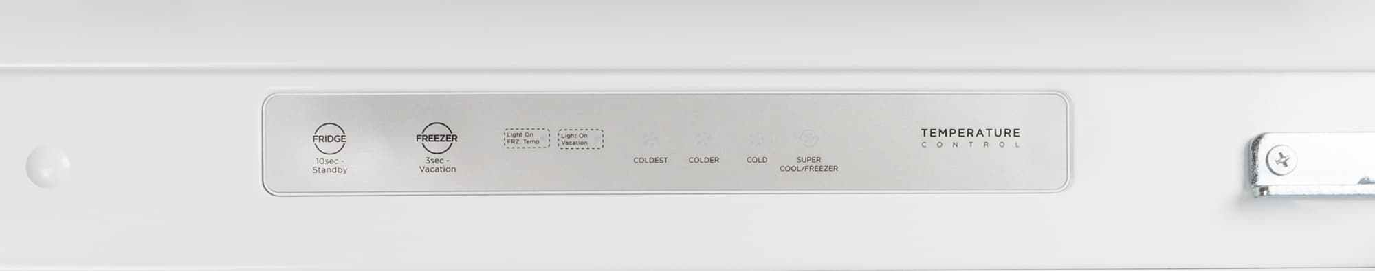 Все надписи на панели — на английском языке. За установку температуры в холодильном отделении отвечает кнопка «Fridge», а за морозилку — «Freezer».