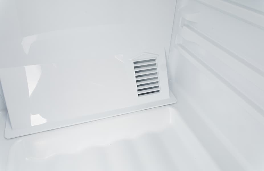 В нижней части холодильного отделения можно видеть большую вентиляционную решетку: именно отсюда в камеру поступает охлажденный воздух.