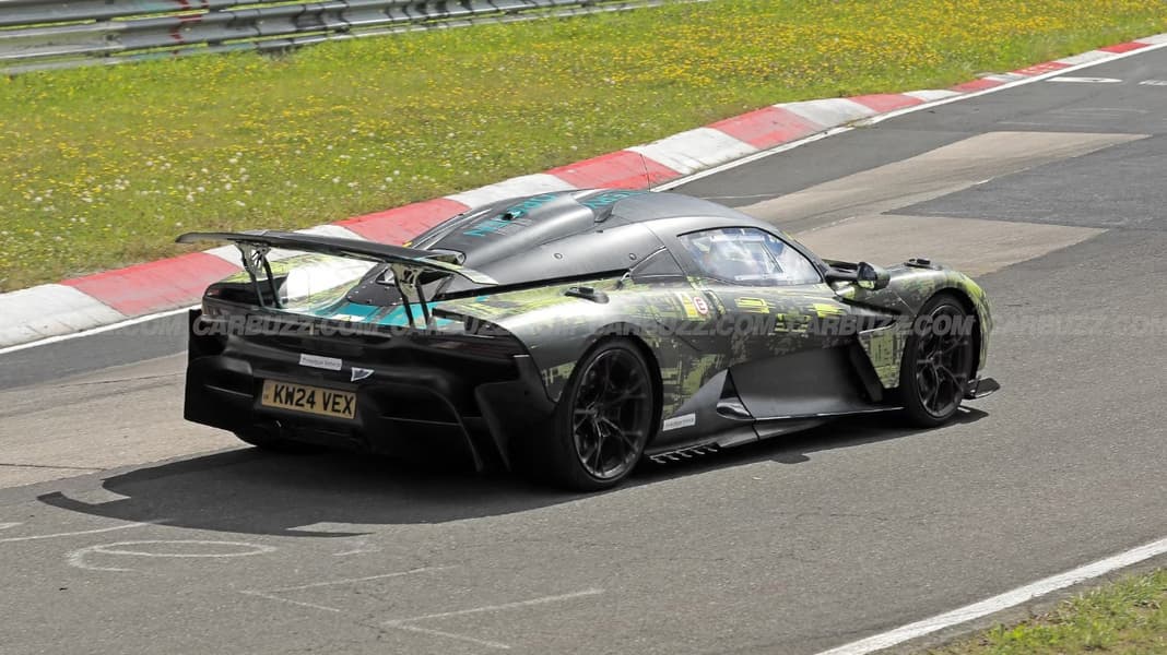 Первые фотографии гоночного автомобиля Aston Martin Valhalla AMR на трассе Нюрбургринг опубликовало автомобильное издание CarBuzz.