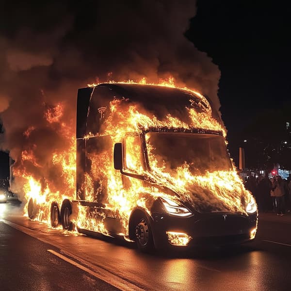 Потушить такой пожар очень сложно. Первый Tesla Semi загорелся в США