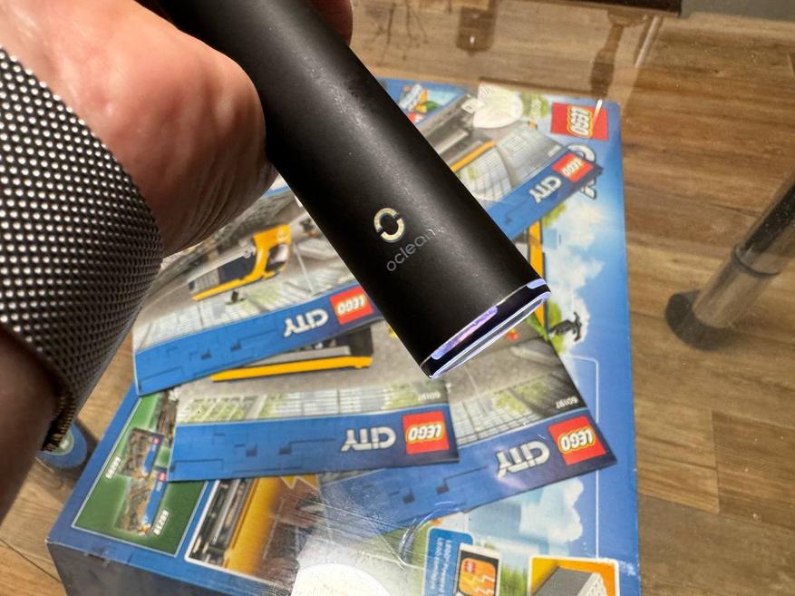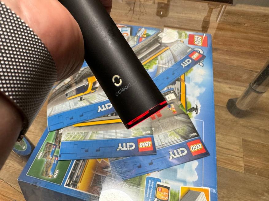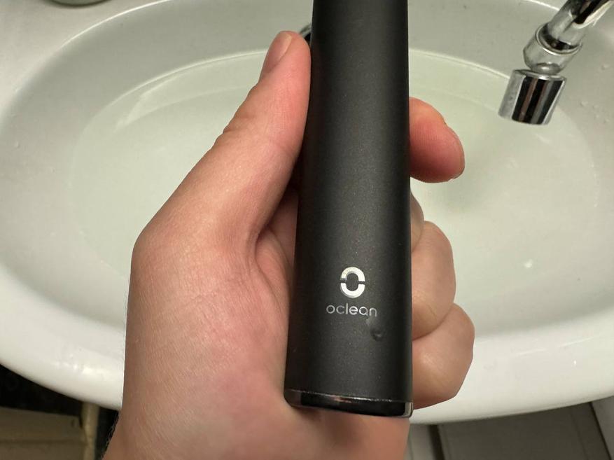 Корпус сделан из гладкого пластика со специальным покрытием, которое ощущается тактильно приятно, создавая впечатление легкой шероховатости. Логотип Oclean на корпусе щетки имеет подсветку, создавая дополнительный элемент стиля и удобства при использовании в темное время суток.