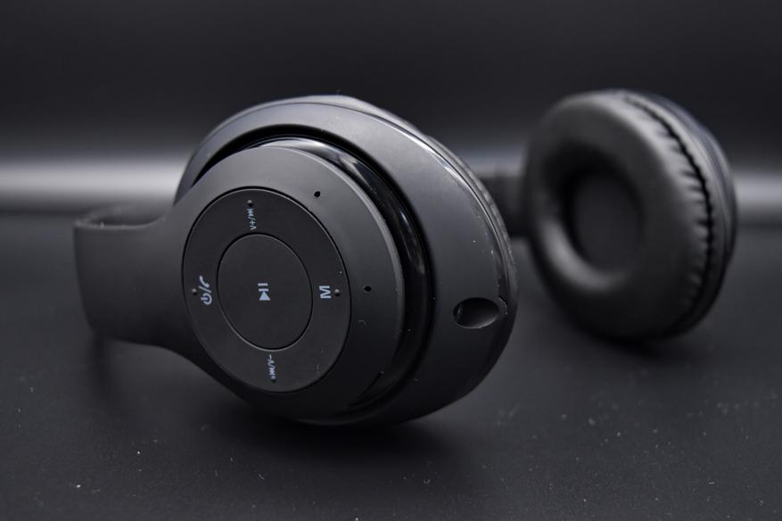Элементы управления музыкой и телефонными звонками, а также технологические отверстия находятся на левой чашке. Там в центре расположен блок управления из четырехпозиционного кольца-джойстика и вписанной в него многофункциональной центральной кнопки – кнопка остановки и возобновления воспроизведения; на кольце-джойстике размещены кнопки включения и выключения устройства, ответа на звонки, регулировки громкости и навигации по трекам, для переключения устройства в проводной/беспроводной режимы.