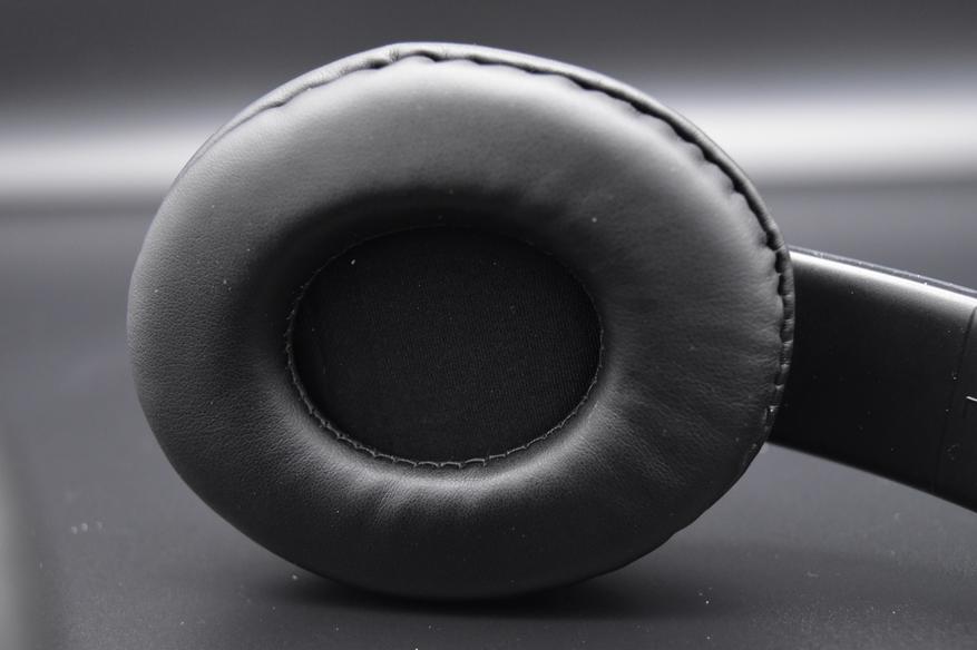 Материалом внешней отделки амбушюров является черного цвета и средней по мягкости полимер (искусственная кожа), что неплохо спасает от внешних шумов. Хотя, следует заметить, что хотелось бы иметь лучший эффект. Размеры наушников полностью закрывают уши.