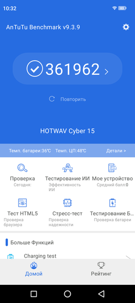 У смартфона Hotwav Cyber 15 заявлена батарея с заметно повышенным объемом 6280 мА·ч, однако мы не раз уже сталкивались с тем, что в спецификациях китайские производители пишут одно, а на практике смартфон демонстрирует далекую от рекордной автономность. Вот и тут аппарат недотянул даже до средней длительности работы от батареи.