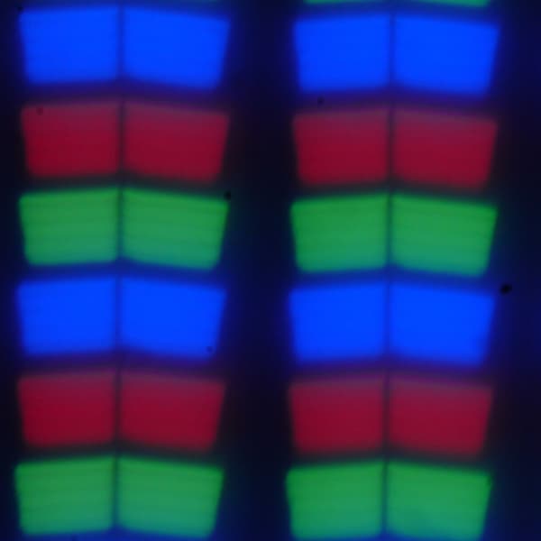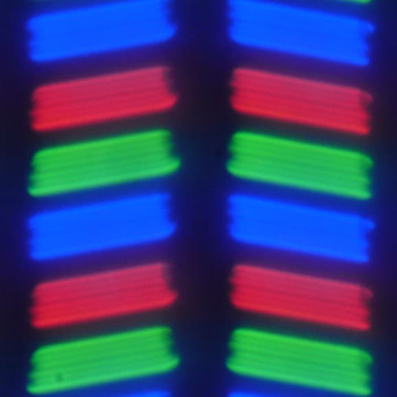 В данном смартфоне используется матрица типа IPS. Микрофотографии демонстрируют типичную для IPS структуру субпикселей: