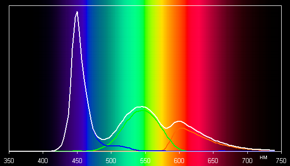 Спектры показывают, что светофильтры матрицы в умеренной степени подмешивают компоненты друг к другу: