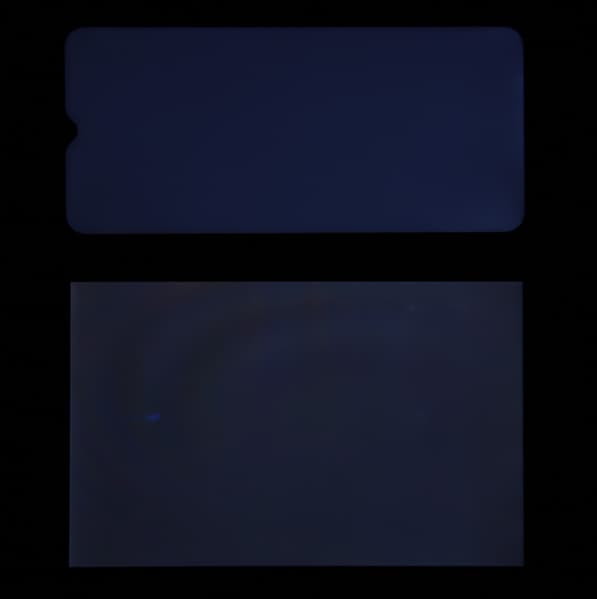При перпендикулярном взгляде равномерность черного поля хорошая (для наглядности яркость подсветки на смартфоне увеличена):