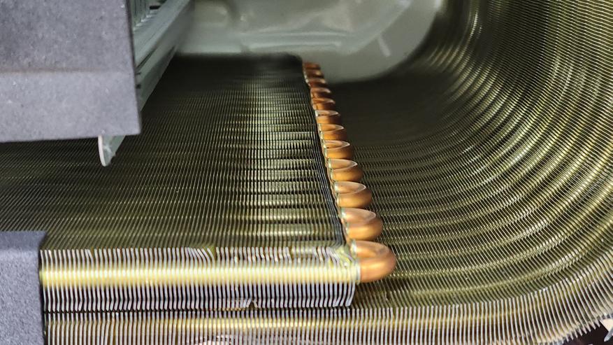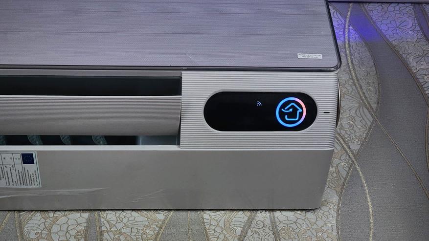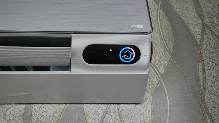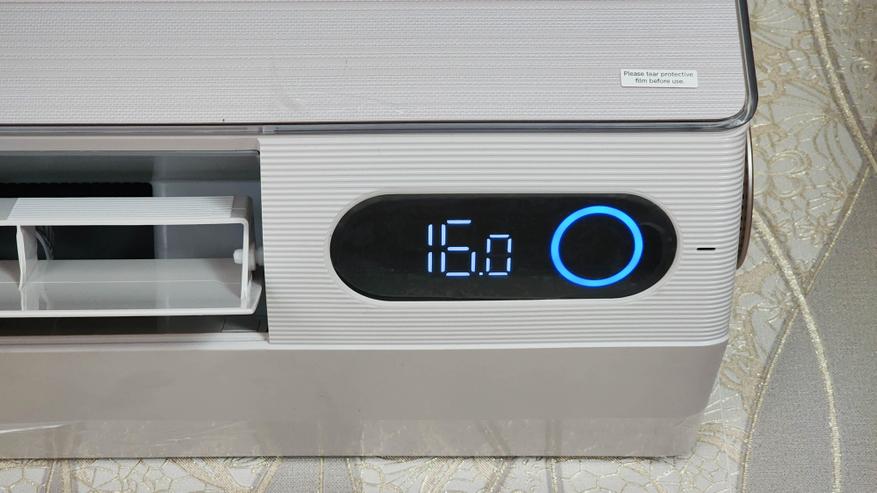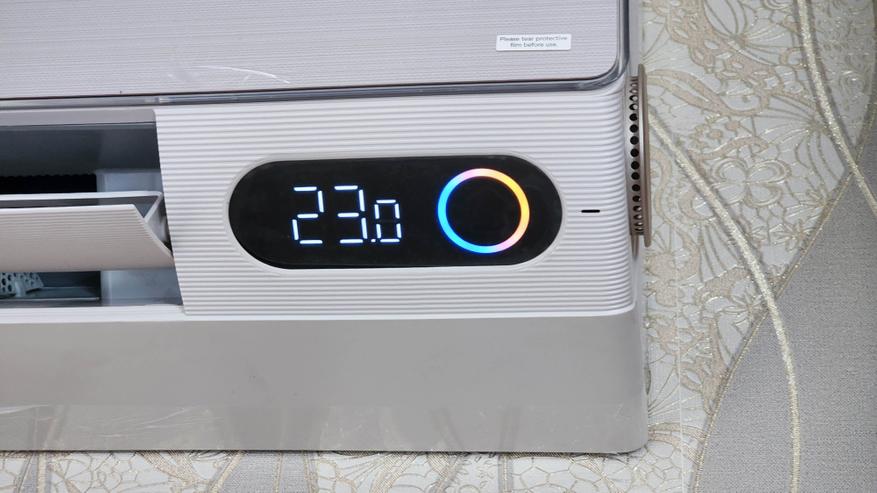 Внутренний блок сплит-системы TCL FRESHIN 09 может служить образцом дизайна бытовой техники в целом. Фронтальная панель имеет глянцевую отделку с текстурой и неброским бежевым цветом. Подключение внутреннего блока предполагается с боковых сторон (слева или справа), или же непосредственно к задней панели (при условии размещения отверстий в стене напротив самого блока). Из особенностей отмечу большой цветной дисплей, перфорированные дефлекторы, а также возможность работы по указанному в приложении (прецизионный обдув) с равномерным распределением потока воздуха путем регулировки угла наклона жалюзи. Внутренний блок оснащается HEPA-фильтром, TVOC-сенсором, а также встроенной системой ионизации. Размеры блока — примерно 900 х 300 х 200 миллиметров.
